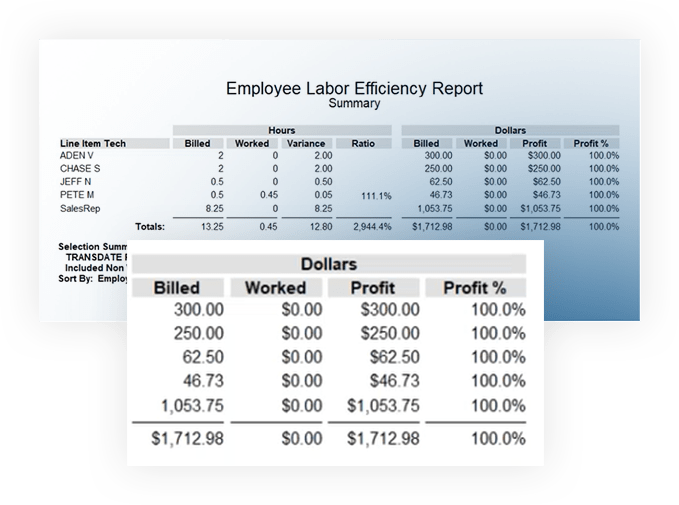 - Produce professional looking invoices with detailed labor notes, warranty information, and performed codes.